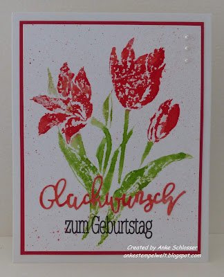 Zusätzlich habe ich ein klares Embossingpulver mit Glitzereffekt verwendet, so dass die Karte je nach Lichteinfall herrlich funkelt.